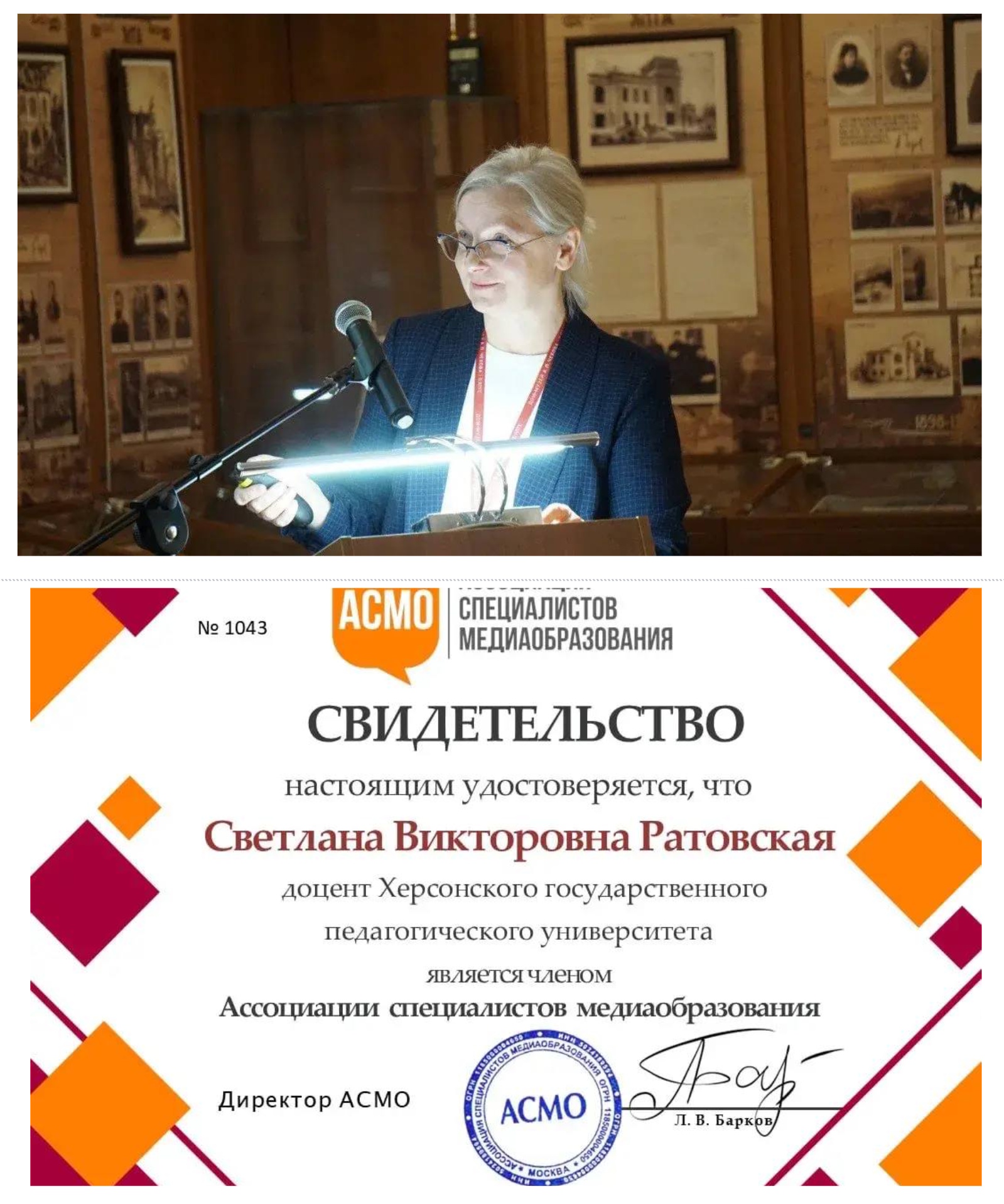 Поздравляем доцента кафедры педагогики и образовательных технологий ХГПУ Светлану Ратовскую с полноправным членством в Ассоциации специалистов медиаобразования!
